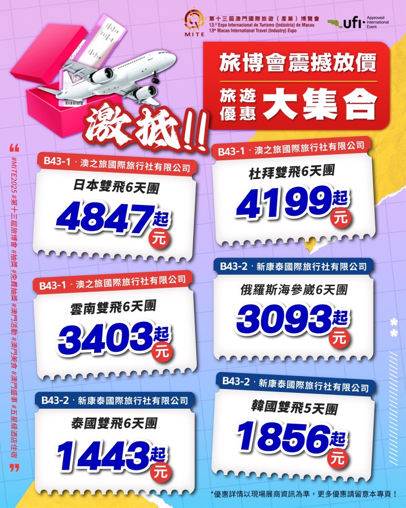 更多精彩內容及最新資訊,歡迎瀏覽澳門國際旅遊(產業)博覽會網站、Facebook專頁及微信帳號。