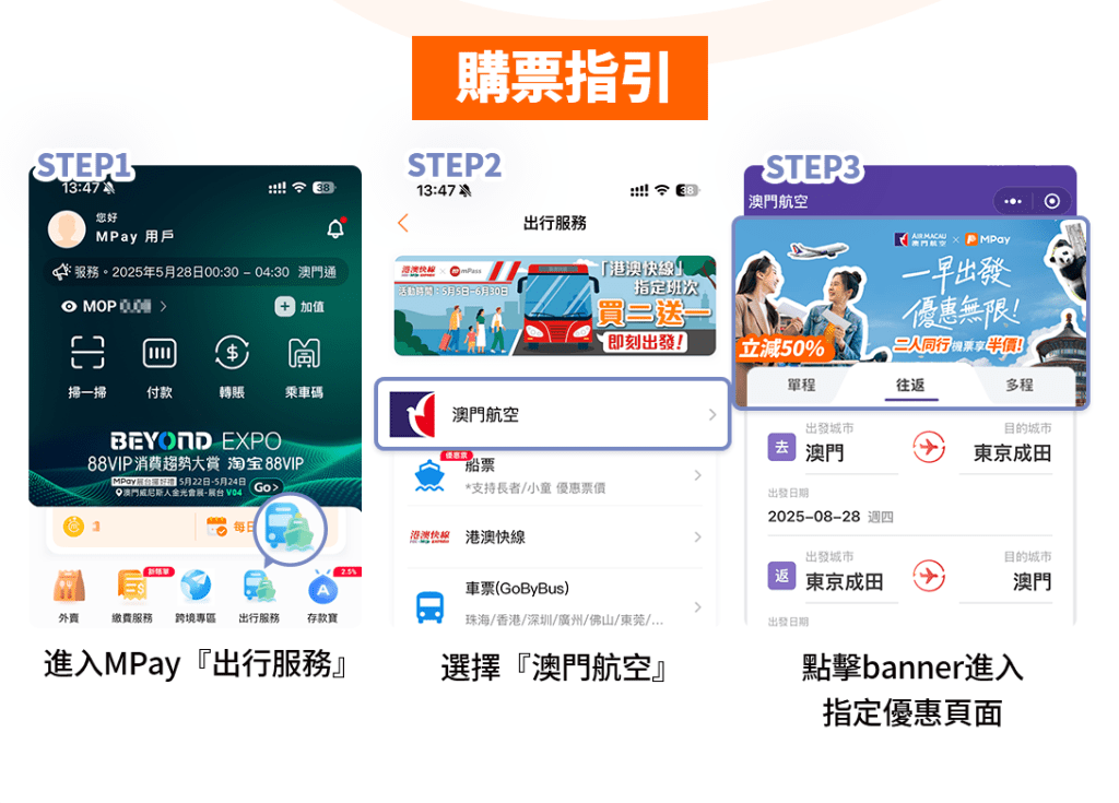 澳門航空聯乘MPay即日起隆重推出兩大促銷活動。