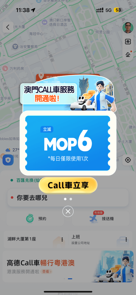 目前高德地圖更為乘客提供六元折扣優惠。有興趣的朋友不妨試試!