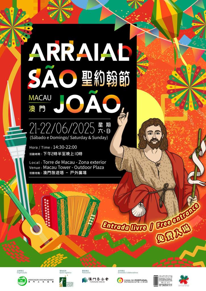 「聖約翰節2025」由澳門土生協會主辦,由澳門基金會贊助,由澳門旅遊塔會展娛樂中心提供場地支持,並由澳門土生葡人青年協會(AJM)、澳門土生教育促進會(APIM)、澳門葡人之家(CPM)及澳門國際研究所(IIM)合作舉辦。如有任何查詢或任何團體有意參加,請致電28372252與澳門土生協會聯絡。