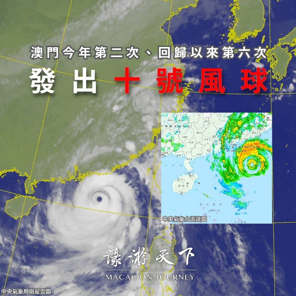 氣象局將於清晨五時三十分發出十號風球。這是澳門今年第二次、回歸以來第六次發出十號風球。