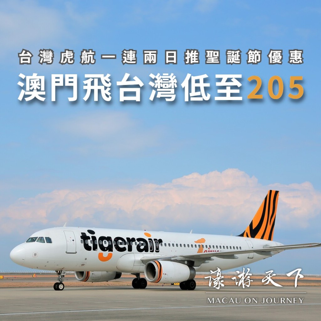 台灣虎航今日起一連兩日推出聖誕節優惠,澳門至台灣低至港幣205元。