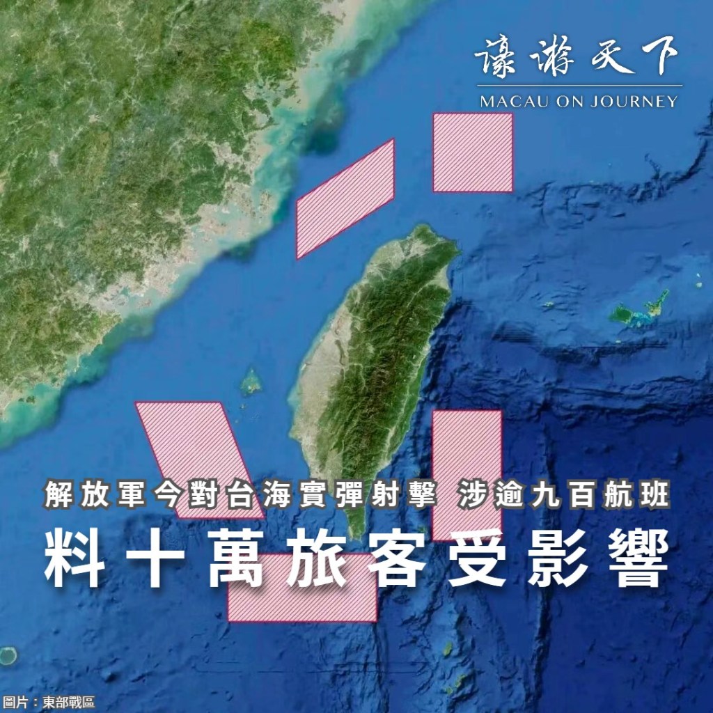 中國人民解放軍東部戰區,今日將於台灣周邊海域、空域,進行軍事演習並組織實彈射擊。台灣民航部門預計屆時有超過九百個航班、十萬名旅客受影響。