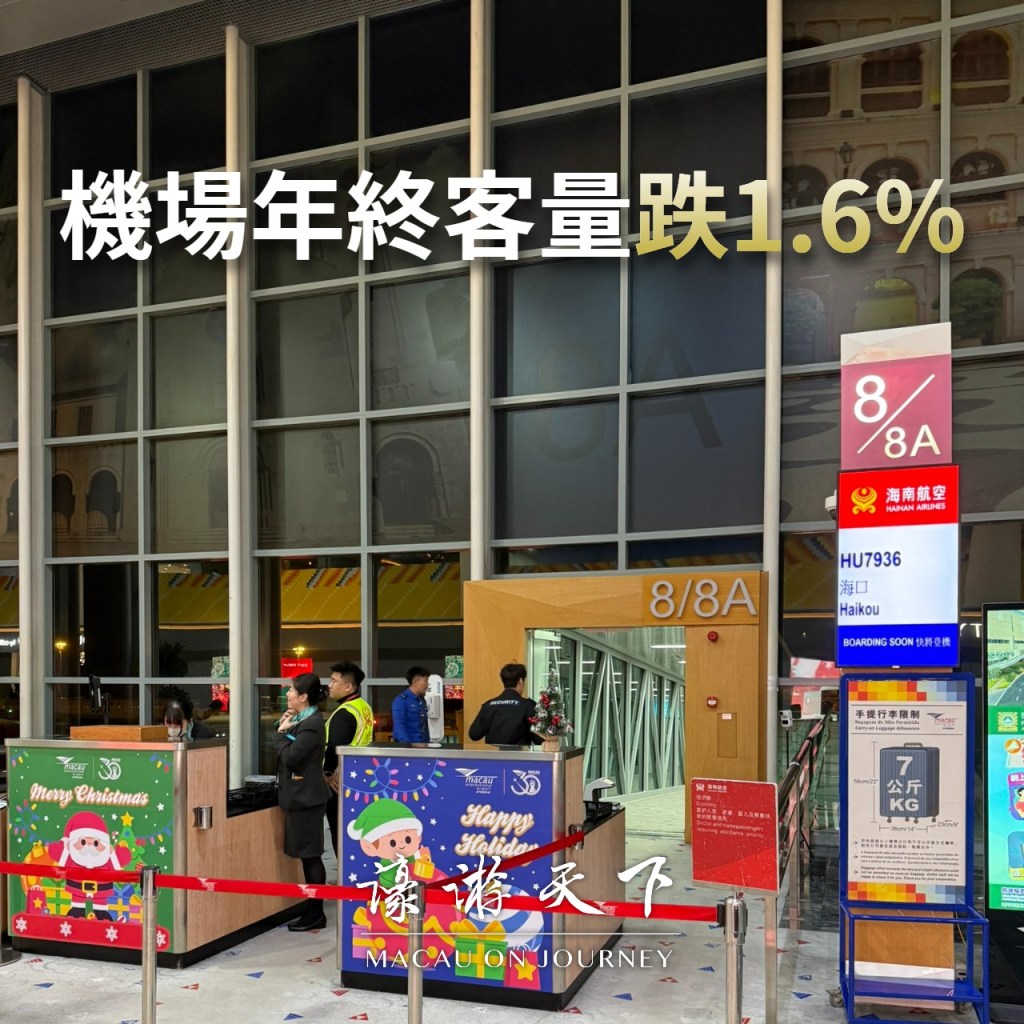 澳門機場公佈2025年年終客量超過752萬人次,比前年下跌1.6%,但仍然是機場營運三十年來第四高。