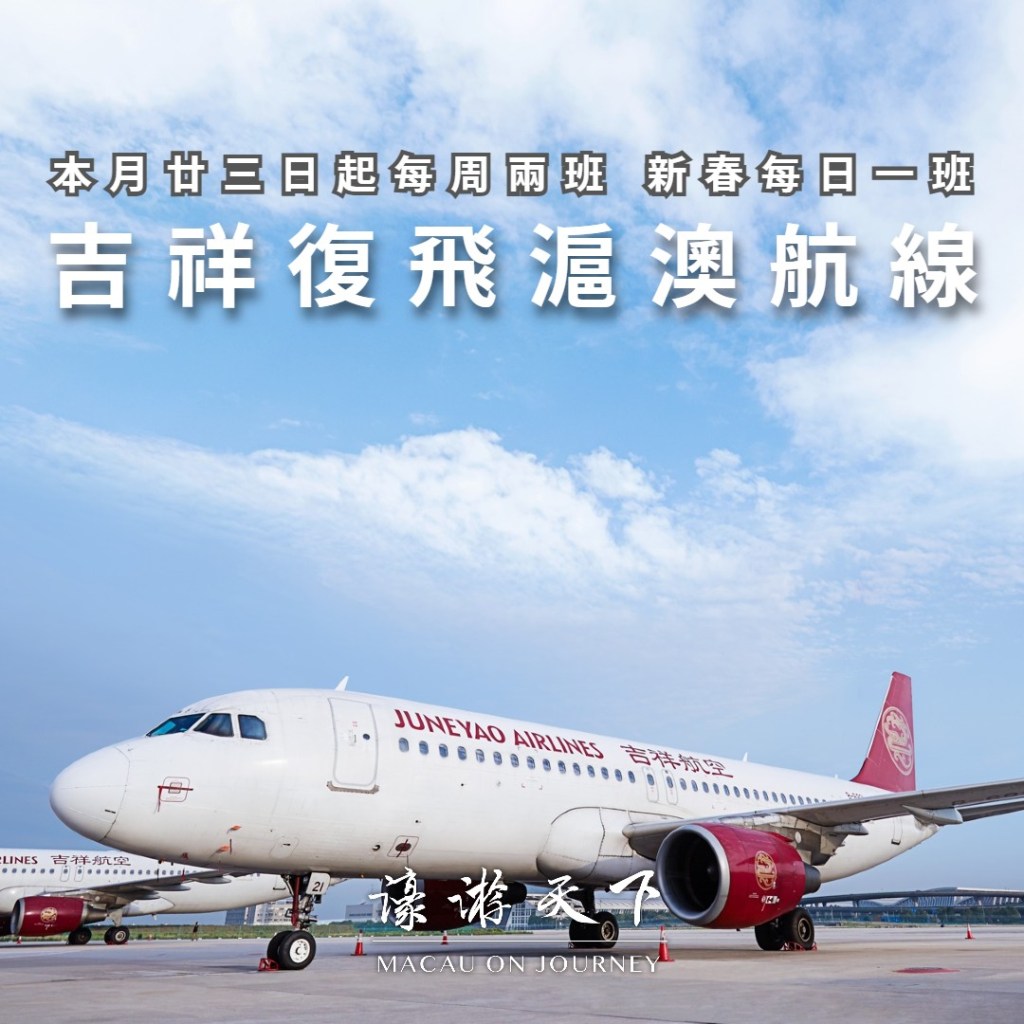 內地吉祥航空重返澳門市場,本月23日起復飛上海浦東來往澳門的航線。