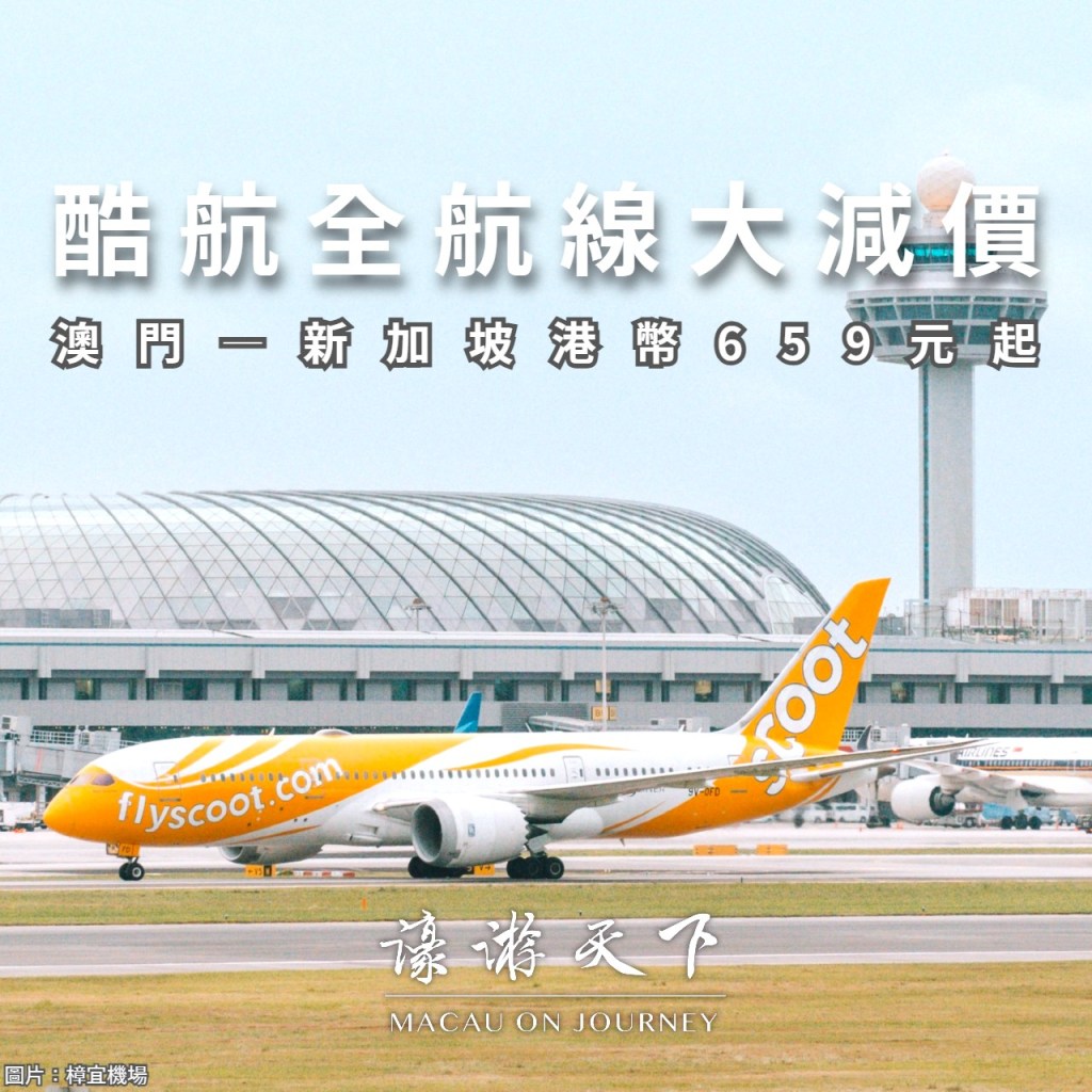 新加坡航空旗下低成本航空品牌酷航(Scoot)現正推出全航線大減價,澳門飛往新加坡單程連稅只需港幣659元起!