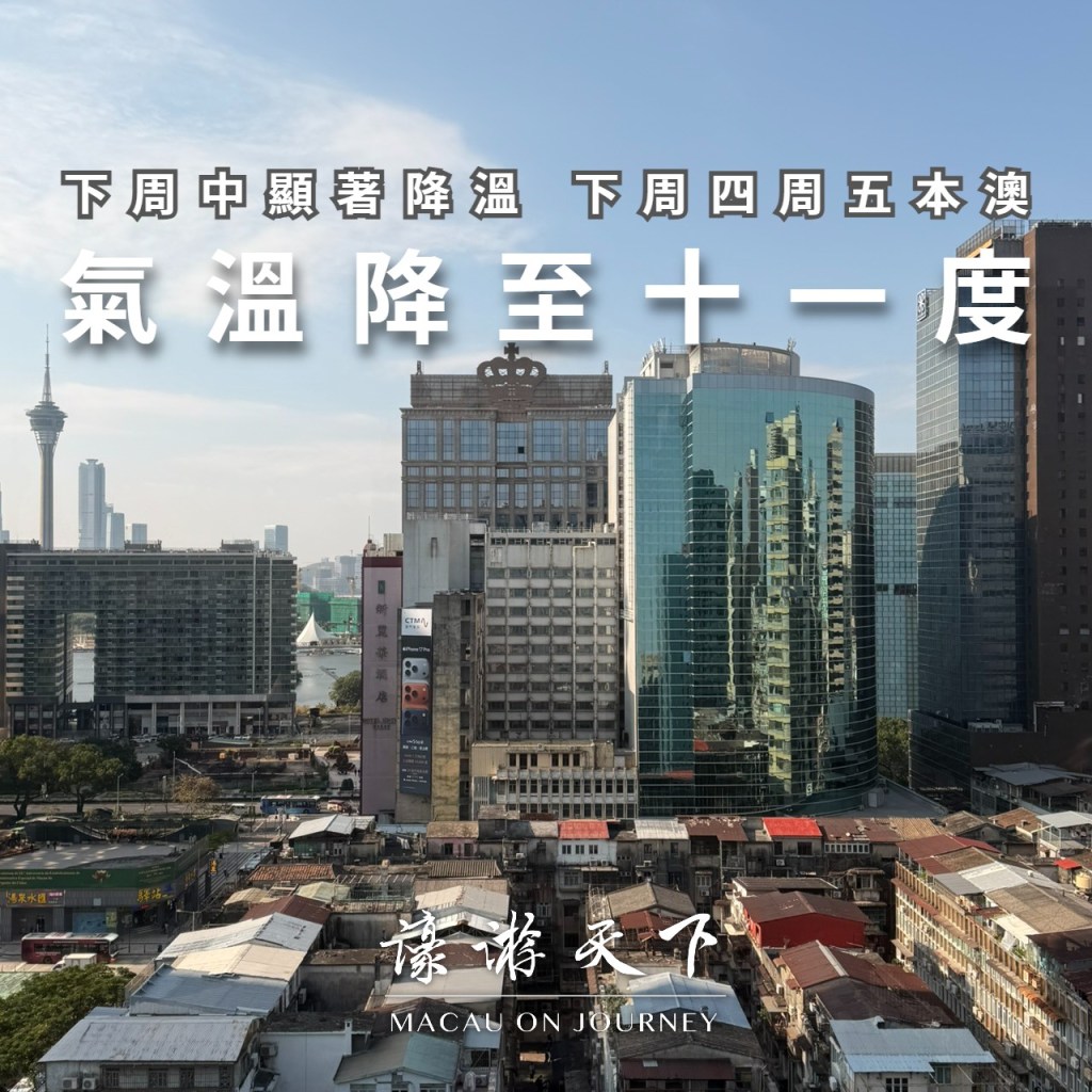 當局的七日天氣預報顯示,下周三起氣溫下降至攝氏12度,周四至周五氣溫進一步下降至11度,天氣寒冷及乾燥,多雲和部份時間有陽光。