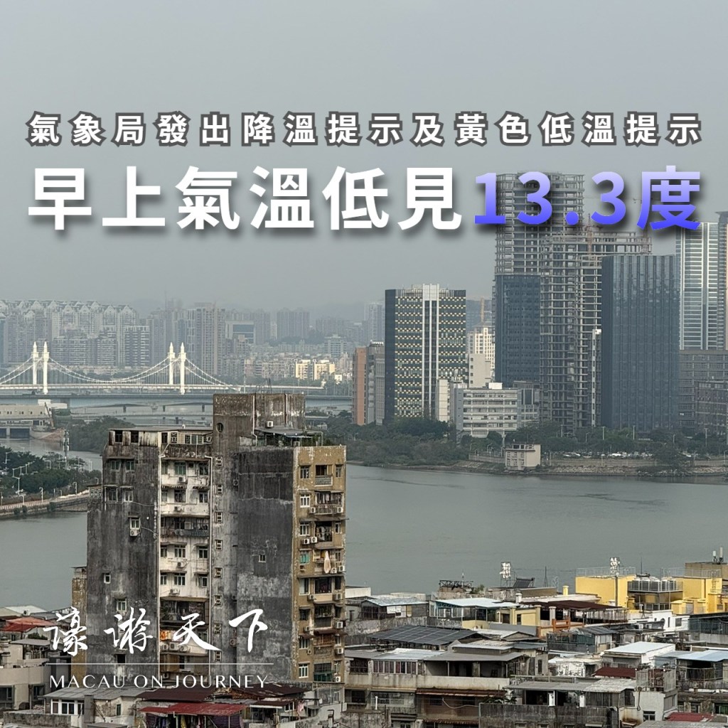 氣象局已發出黃色低溫提示,預料本澳未來數日天氣持續寒冷,呼籲市民適當添衣,注意保暖。