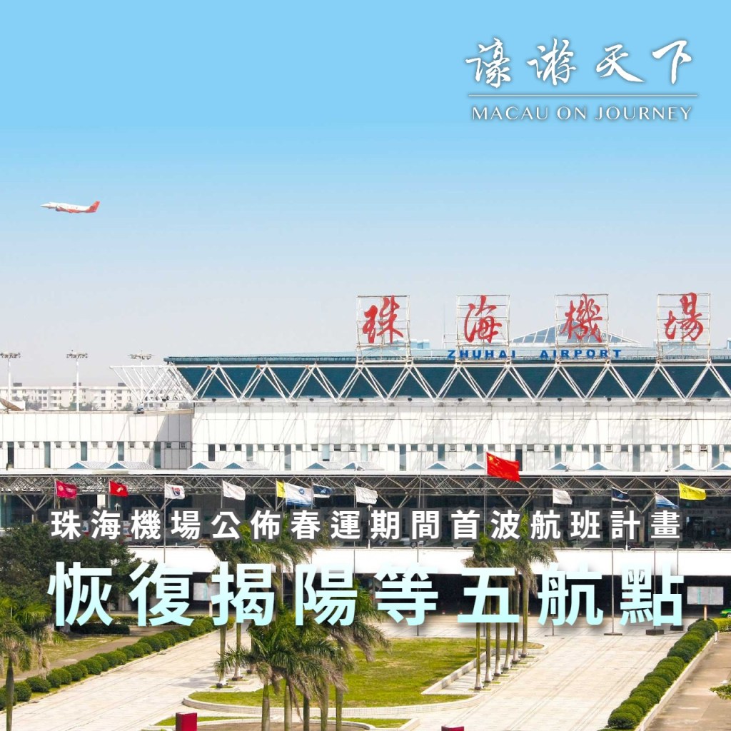 珠海機場公佈春運期間首波航班計畫,將恢復揭陽等五個航點,並加密成都、西安、昆明、杭州等熱門航線班次。