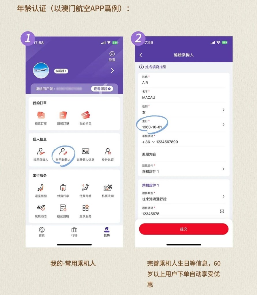 人生六十才開始!澳門航空現正推出長者優惠,年滿六十歲即享九折!