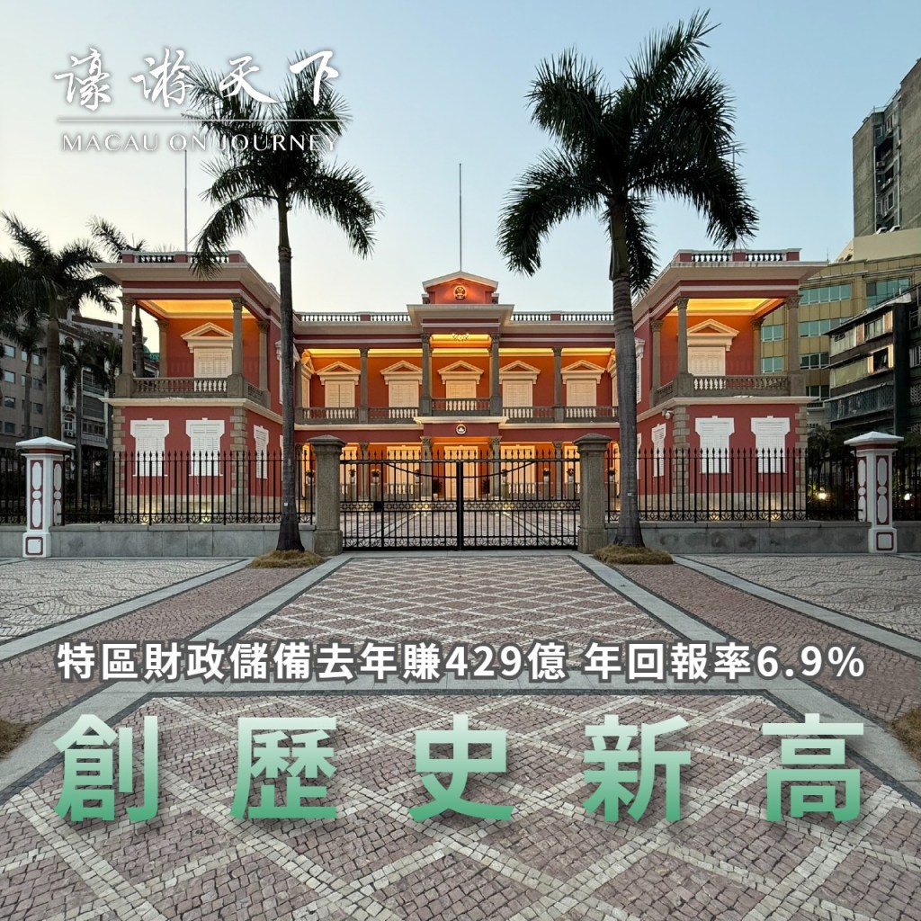 澳門特區財政儲備過去年錄得429.2億元的投資收益,年度回報率為6.9%,創歷史新高。