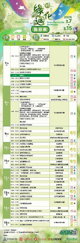 有關澳門綠化周的活動資訊,可瀏覽市政署網頁及澳門自然網,或致電2833 7676或2888 0087查詢。