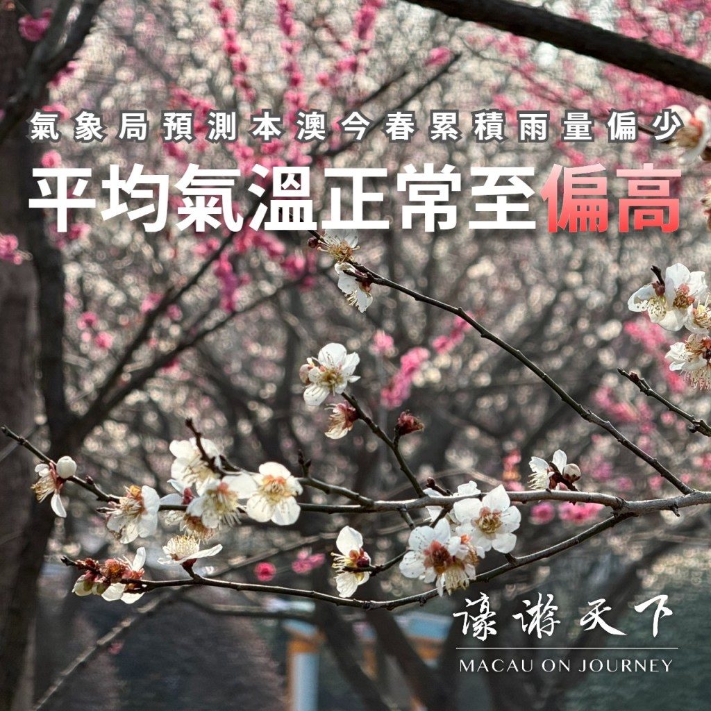 地球物理氣象局綜合最新預報資料,預測2026年本澳春季(3月至5月)的平均氣溫將屬於正常至偏高;而降雨方面,預測整季累積雨量將屬於偏少。