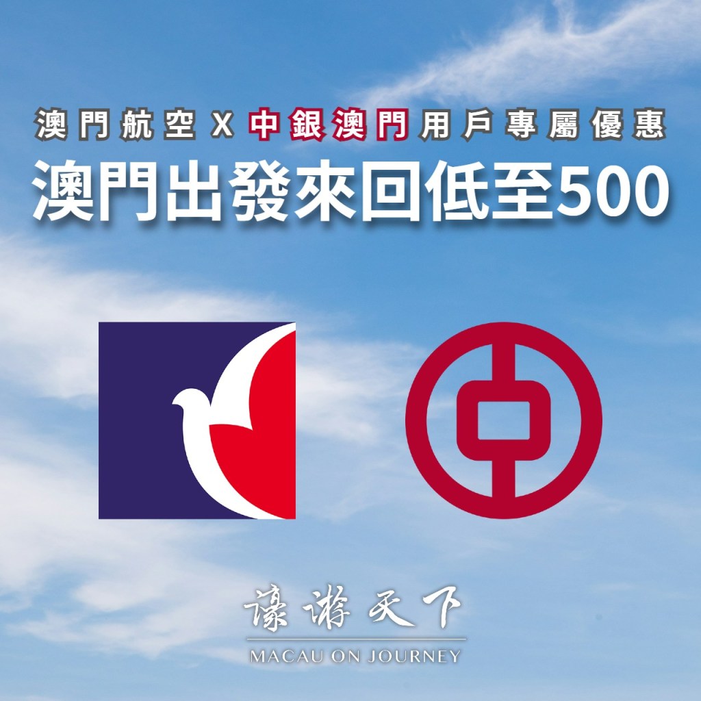 澳門航空即日起推出「中銀・澳航 伴您隨心飛」雙人出行專屬優惠,二人同行來回只需五百元起(不連稅費)!
