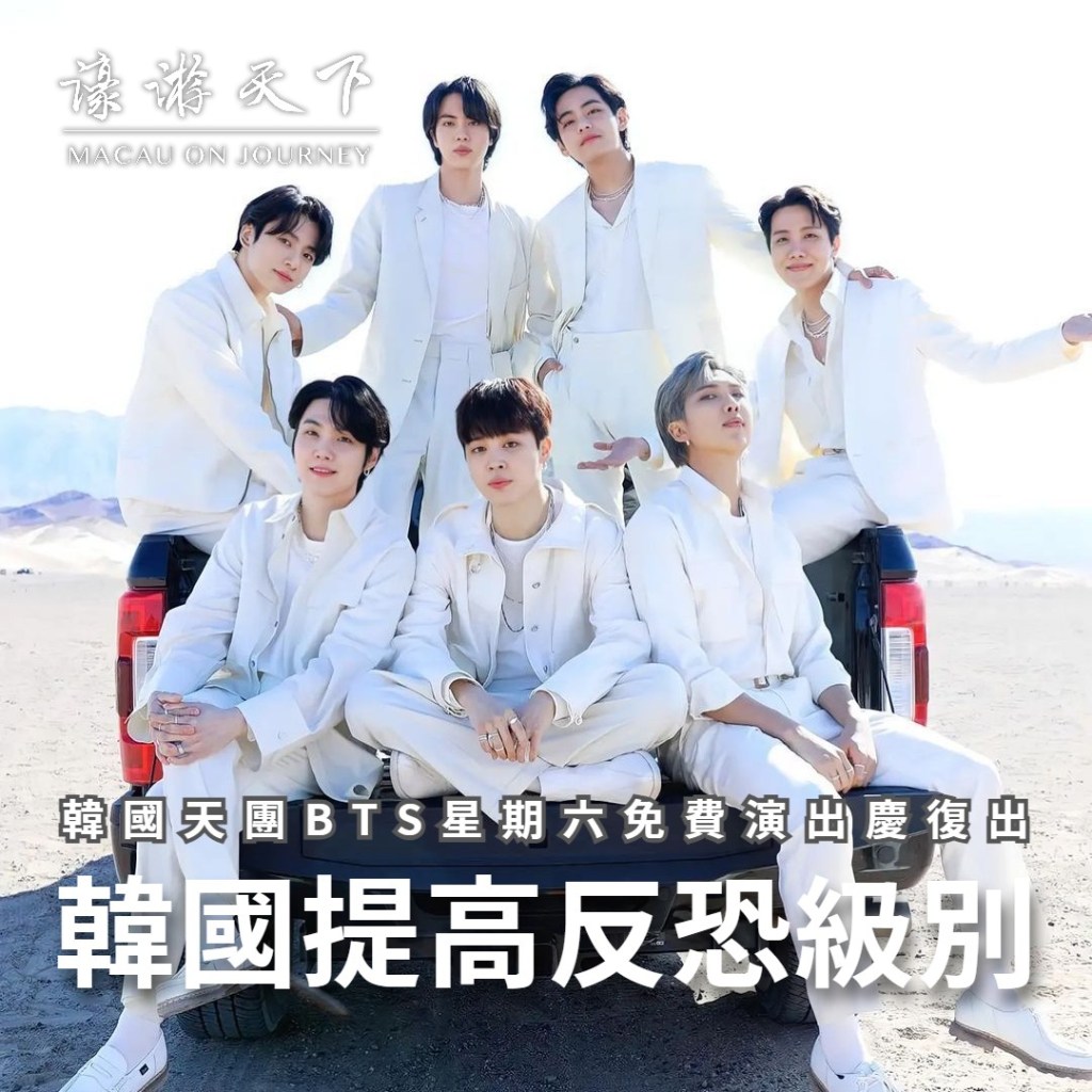 韓國天團防彈少年團(BTS)將於星期六在韓國首爾光化門免費開騷,慶祝團員完成兵役後復出,政府決定提高演唱會周邊區域的反恐級別。