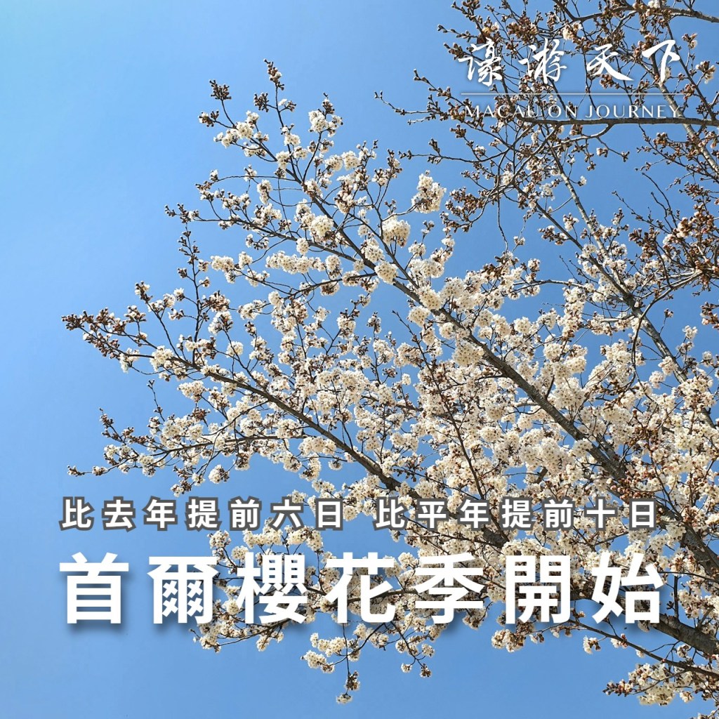 韓國氣象廳昨日宣佈,首都首爾櫻花開花。相比去年,今年的櫻花提前六日開放,較平年更提早十日。