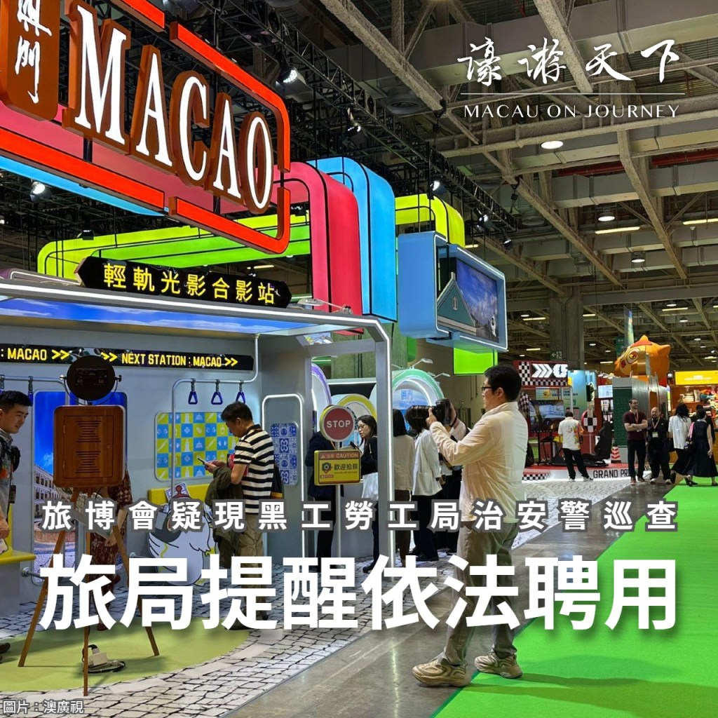 社交媒體流傳旅博會出現黑工的帖文,勞工局及治安警昨日下午曾到場突擊巡查,期間未發現懷疑非法工作的違法行為。旅遊局副局長司徒琳麗亦表示,局方已即時提醒所有參展商,必須依法聘用工作人員。