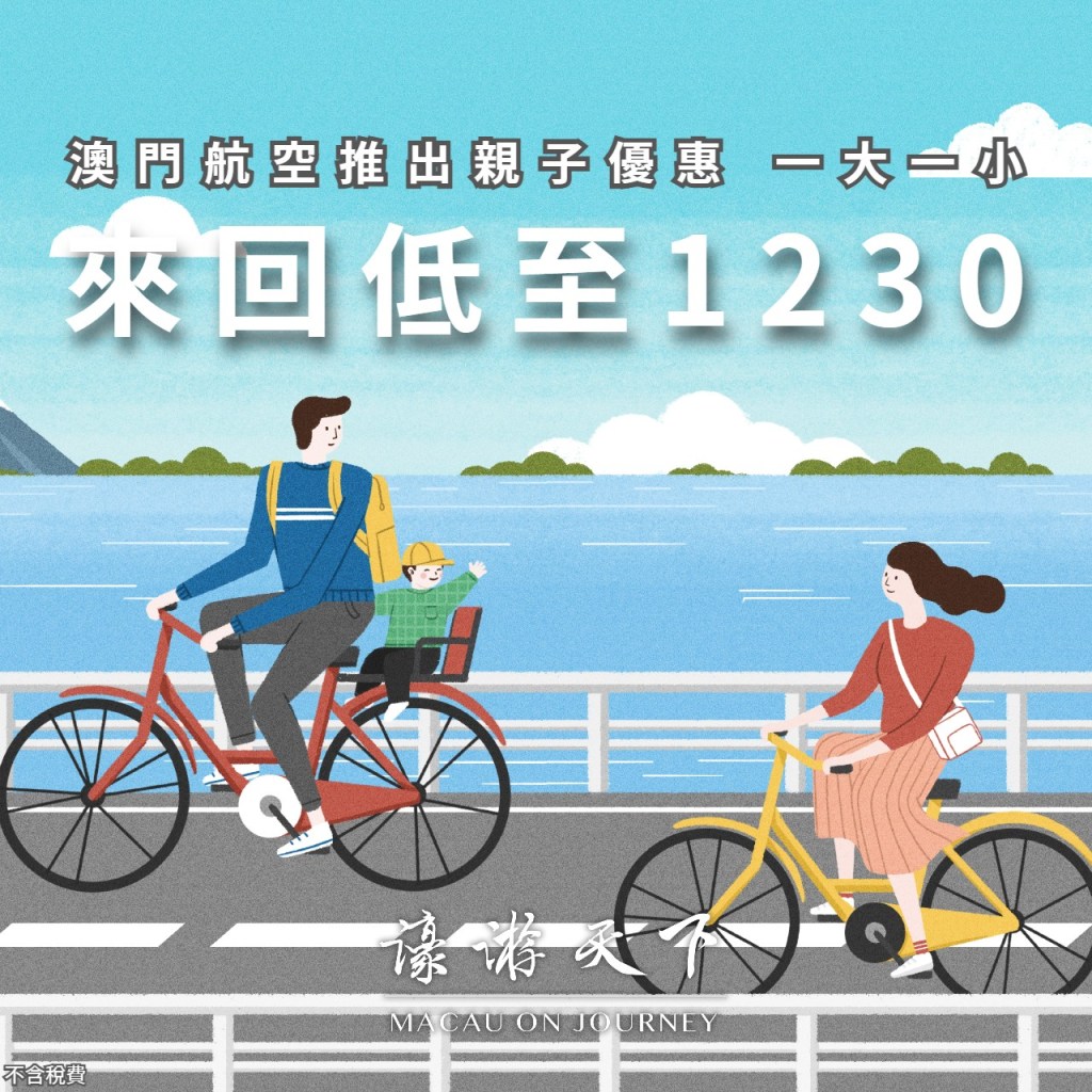 澳門航空即日起推出親子優惠,澳門出發,一大一小來回低至澳門幣1230元!