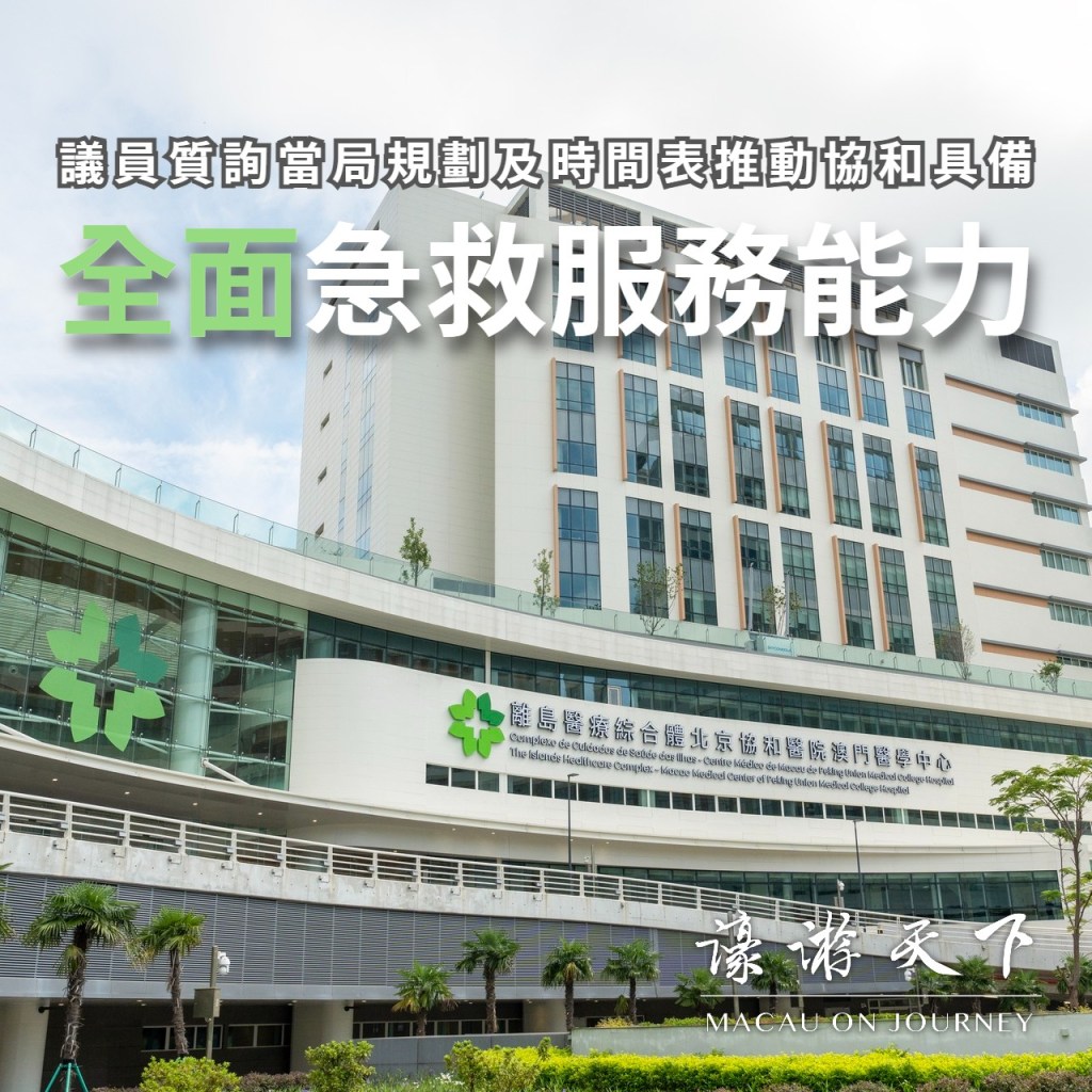 然而,目前中心仍處於成長階段,受醫療設備、人手及床位配置等因素制約,部分疾病診療覆蓋範圍不足,離島急診站急救服務仍有待拓展和完善。為進一步優化本澳醫療服務網絡,提升整體醫療水平,穩步推進「大病不出澳」目標落地,他提出以下質詢: