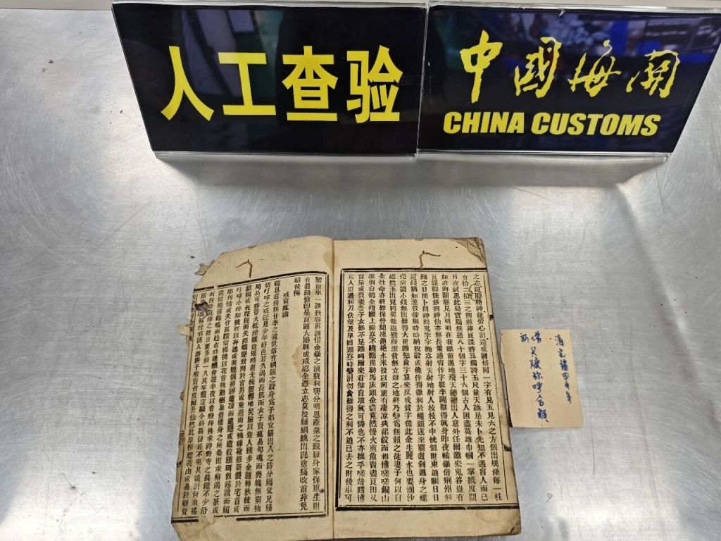 珠海拱北海關所屬九洲海關,近日查獲一宗利用郵寄方式企圖偷運清代教科書出境的案件。