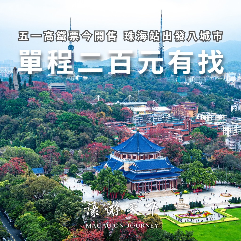 內地五一黃金周,首日鐵路車票今日開售。從最近澳門的珠海站出發,有哪些目的地票價在人民幣200元以內?