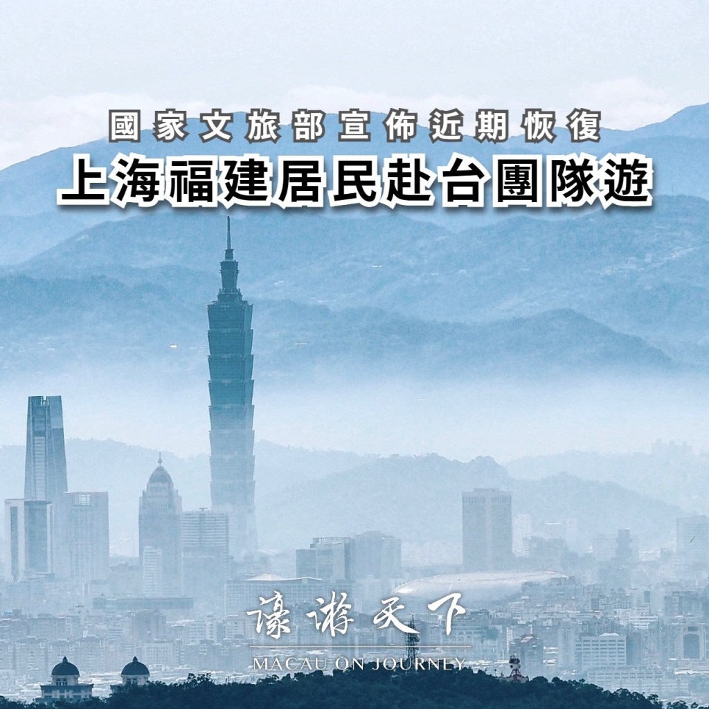 國家文化和旅遊部早上宣佈,大陸將於近期恢復福建、上海居民赴台團隊遊。
