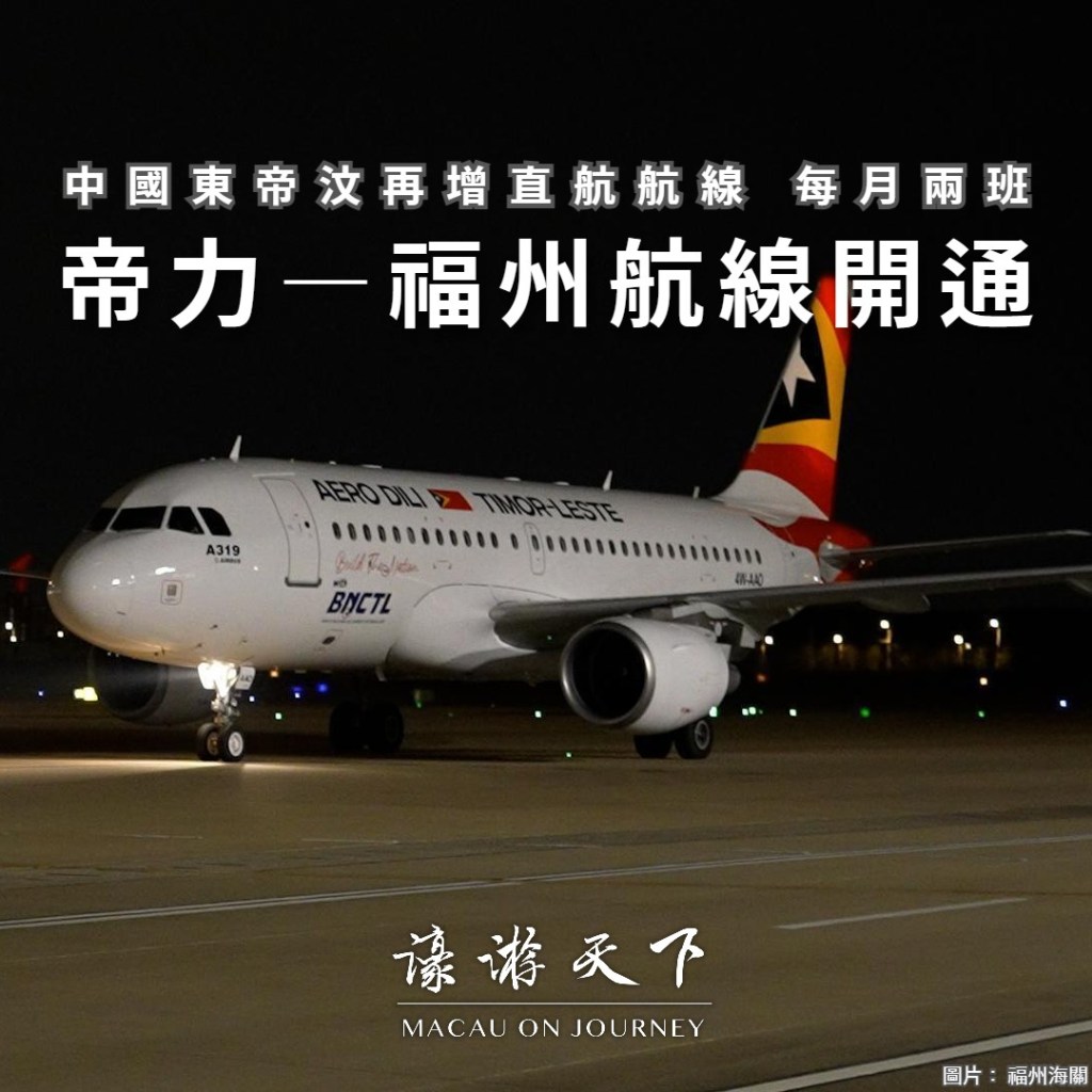 來往東帝汶首都帝力至中國福州的直航航線前日正式開通,是中國及這個葡語國家之間的第二條直航航線。