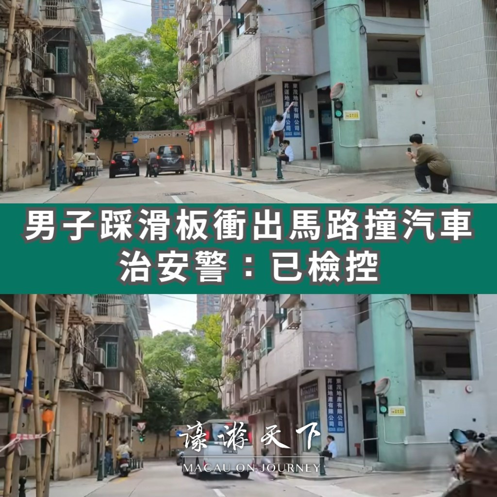 網上今日流傳多段有男子在荷蘭園巴士度街玩滑板時衝出馬路,被汽車撞倒的影片。治安警察局證實了事件,指該名居民的行為影響其他道路使用者的安全,已依法檢控,並稱警方嚴厲譴責有關人士罔顧道路安全的行為。