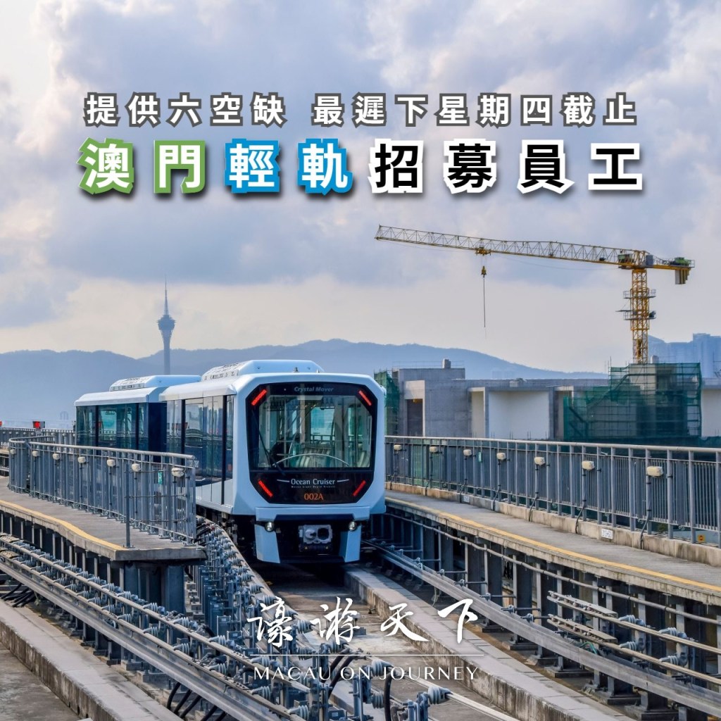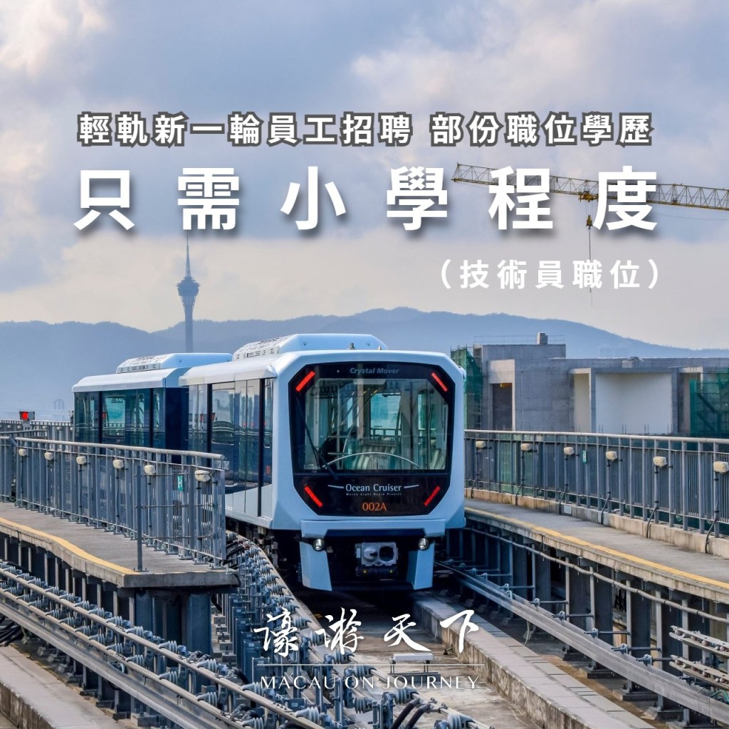 澳門輕軌現正進行新一輪員工招聘,名額共十五名,當中軌道技術員最低學歷要求為小學畢業。