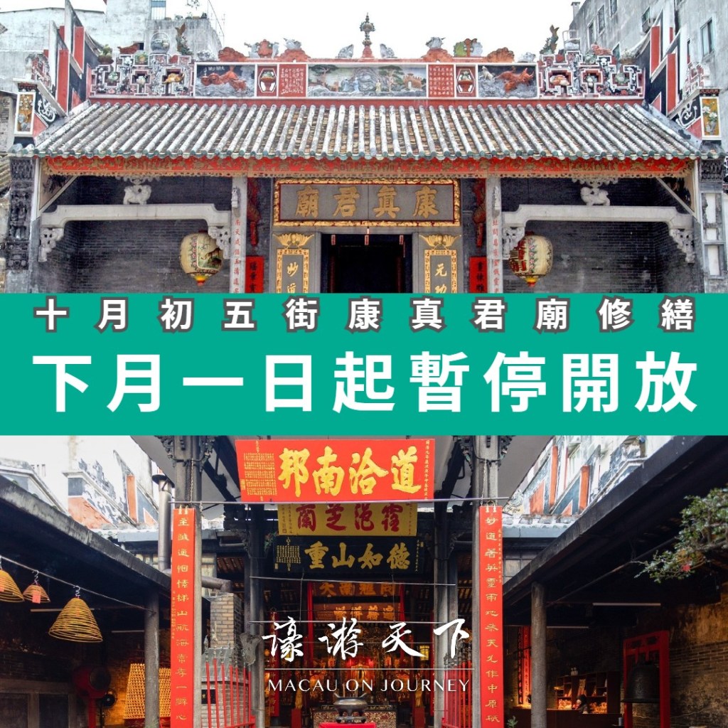 位於十月初五街的康真君廟(康公廟)下月一日起展開修繕工程,期間將暫停開放。