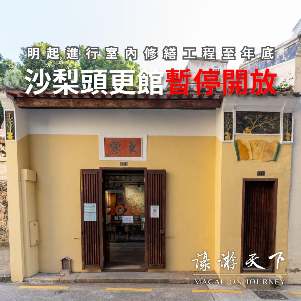 由於進行室內修繕工程,文化局宣佈沙梨頭更館將於明日起暫停開放至年底。