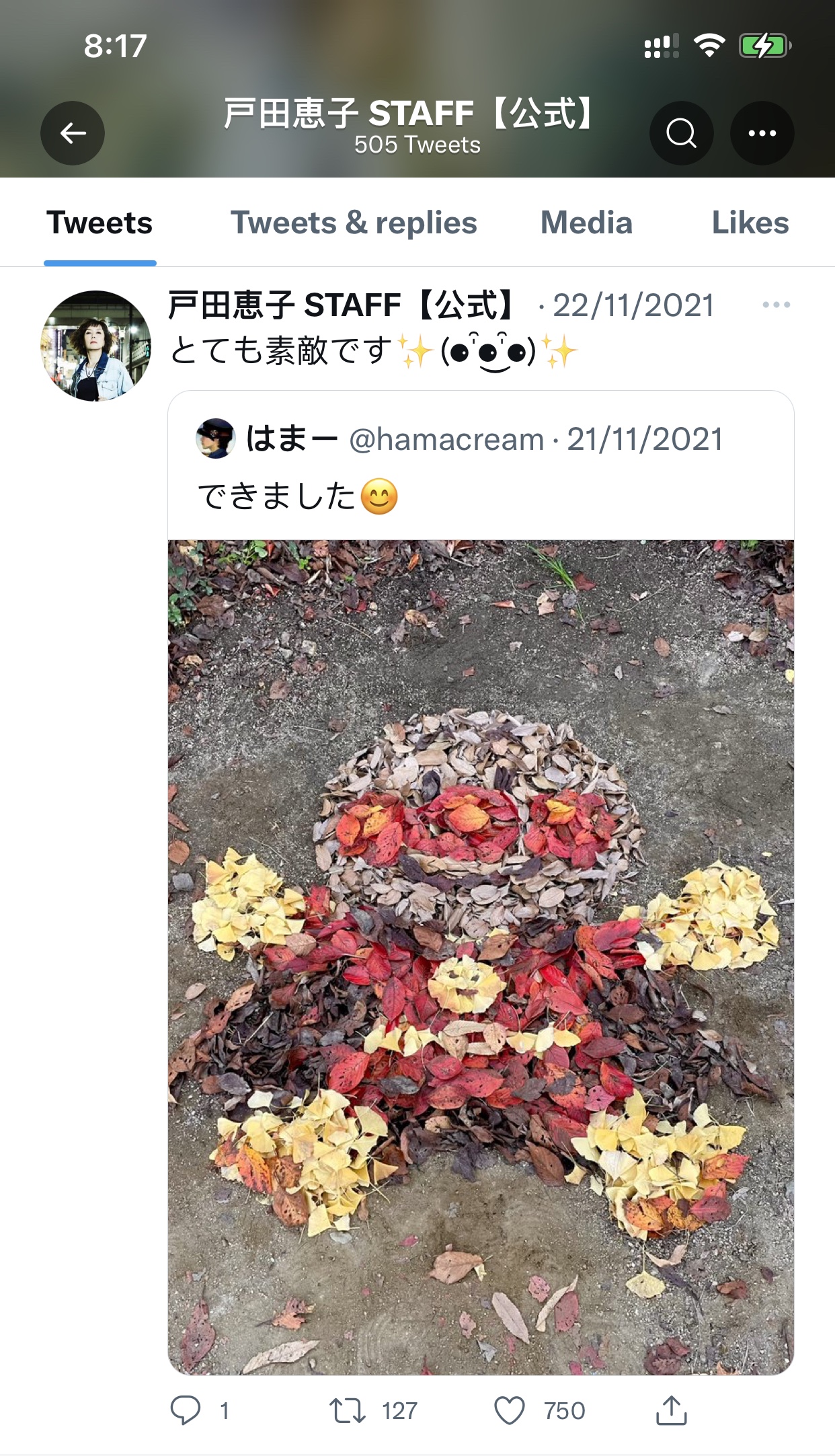 網站同時也發佈了銀杏前線。東京著名的明治神宮外苑銀杏大道將於11月28日處於於最盛期。
