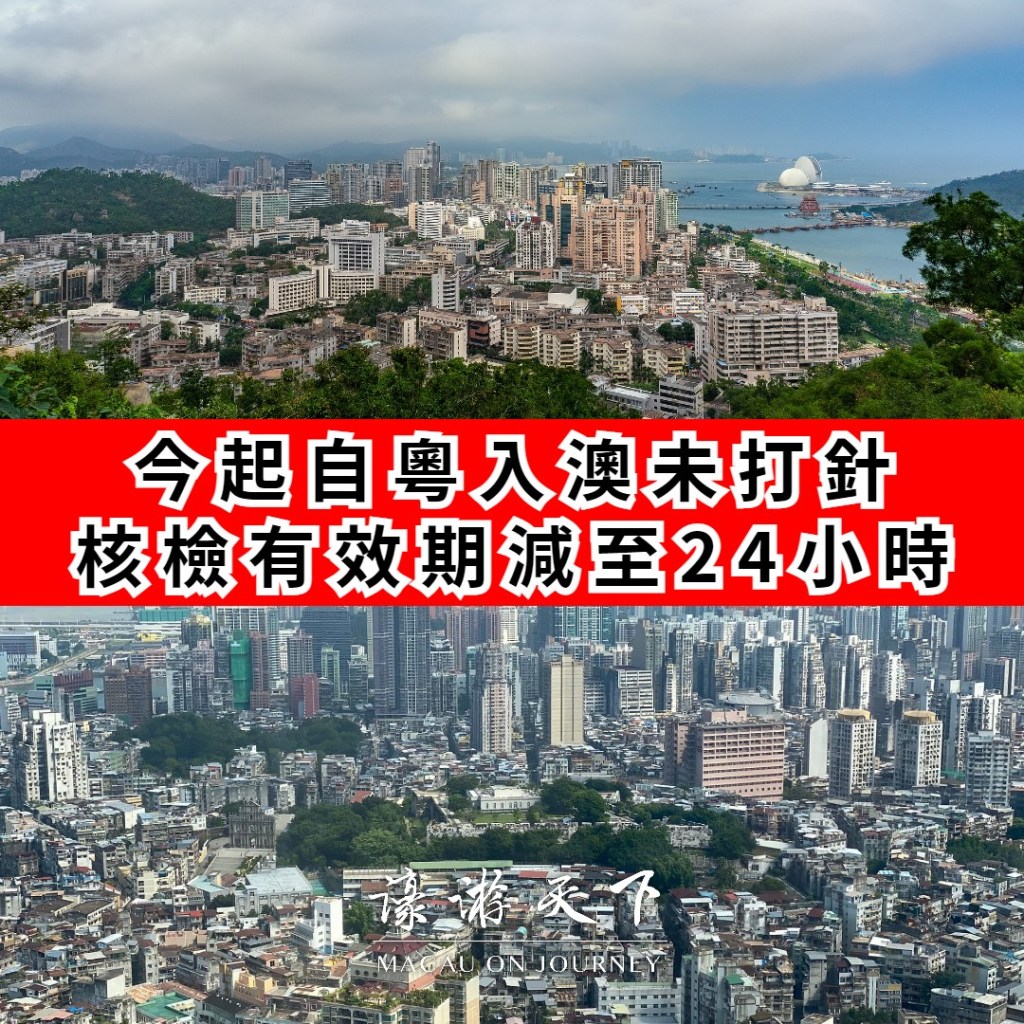 今日起自廣東省入境本澳,五歲或以上未接種新冠疫苗的本澳居民、外地僱員、持有逗留的特別許可或特別逗留證人士,核酸檢測有效期縮短至24小時。