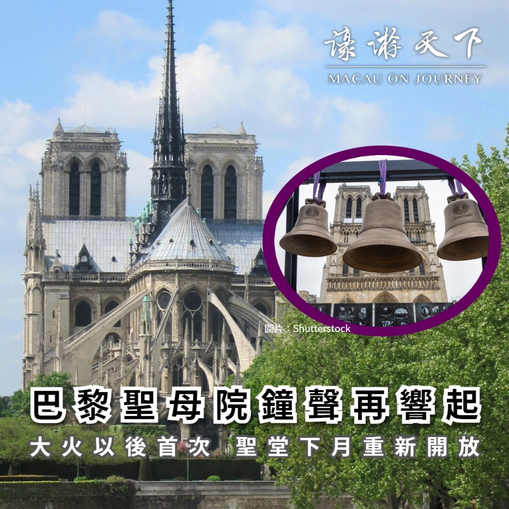 法國巴黎地標建築物聖母院的銅鐘,2019年大火後,星期五首次一同響起鐘聲。