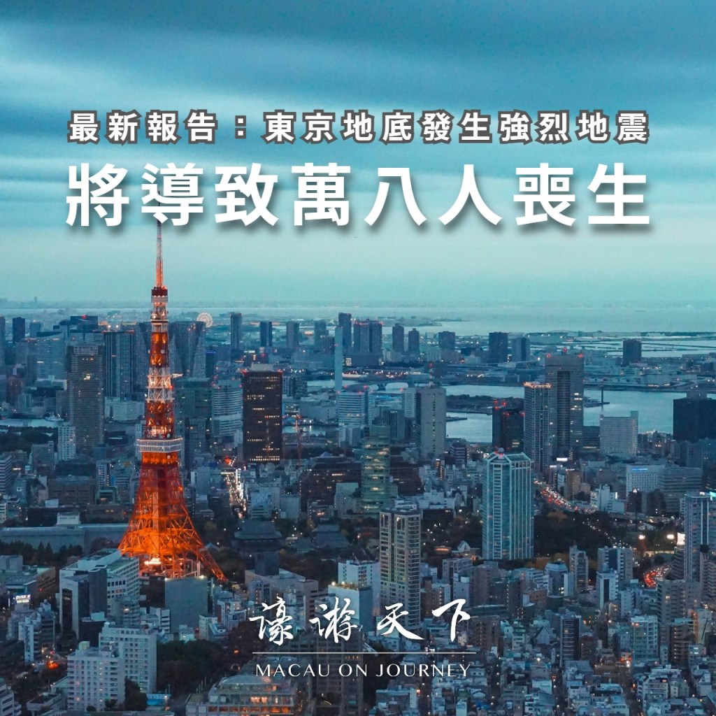 日本當局即將發表的報告指出,首都東京一帶地底一旦發生強烈地震,將導致1.8萬人喪生,並導致83萬億日元(折合約42.84萬億澳門元)的經濟損失。
