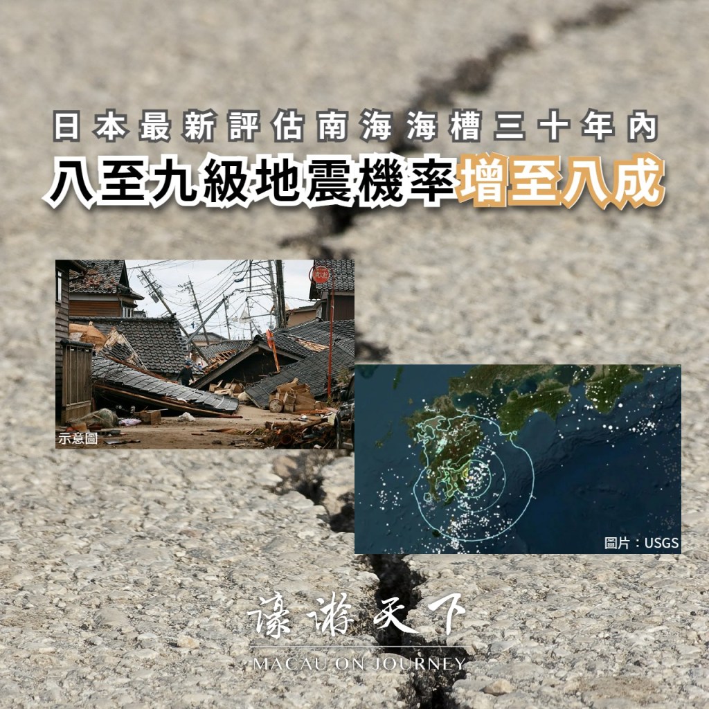 日本宮崎星期一發生黎克特制6.9級地震,再度引發對於南海海槽大地震的關注。根據日本政府最新評估,該區三十年內發生八至九級地震的機率提高至約八成。