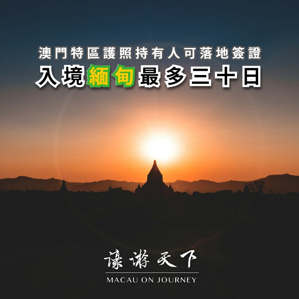 身份證明局宣布澳門特區護照持有人可申請落地簽證入境緬甸最多三十日。