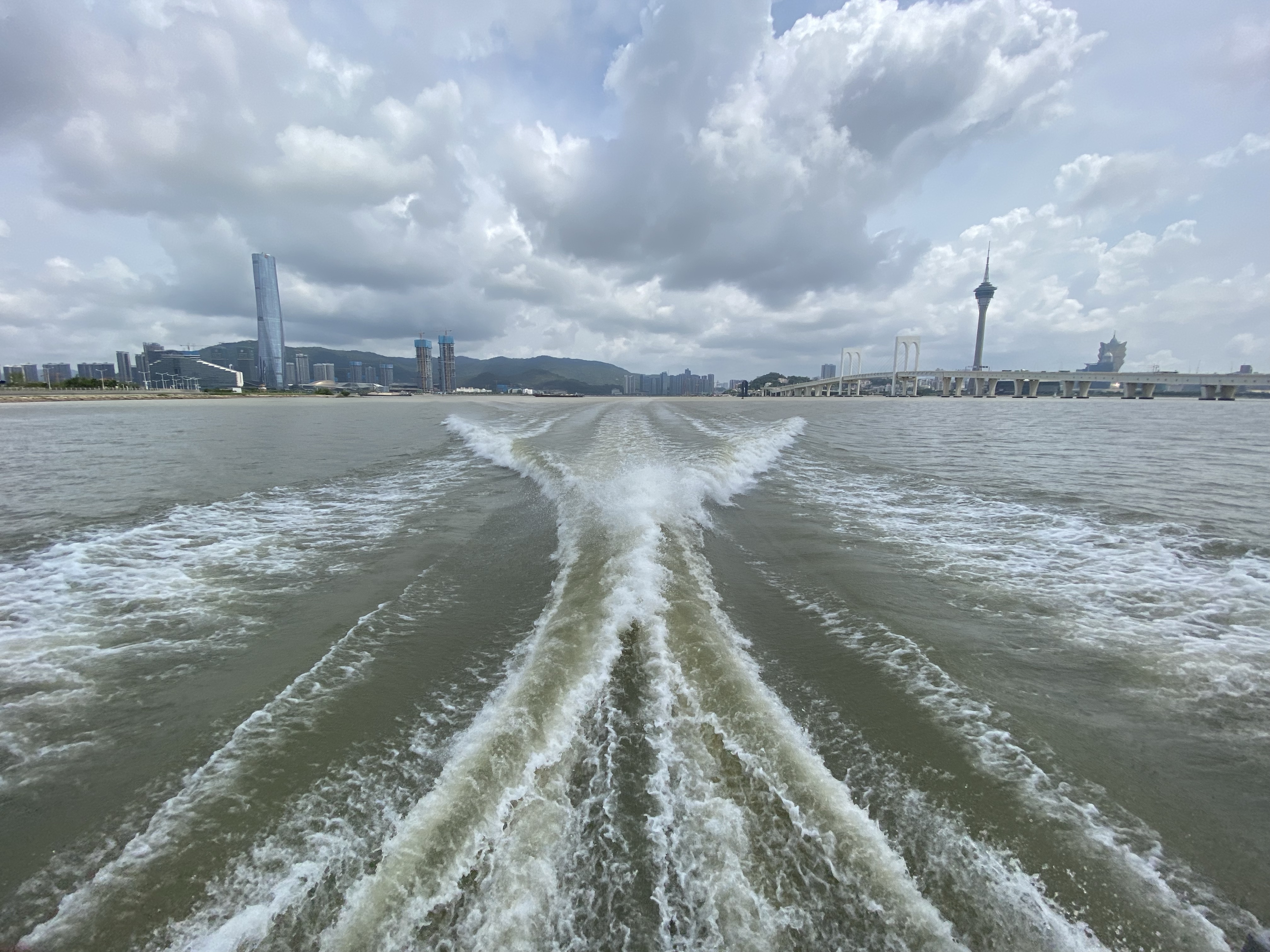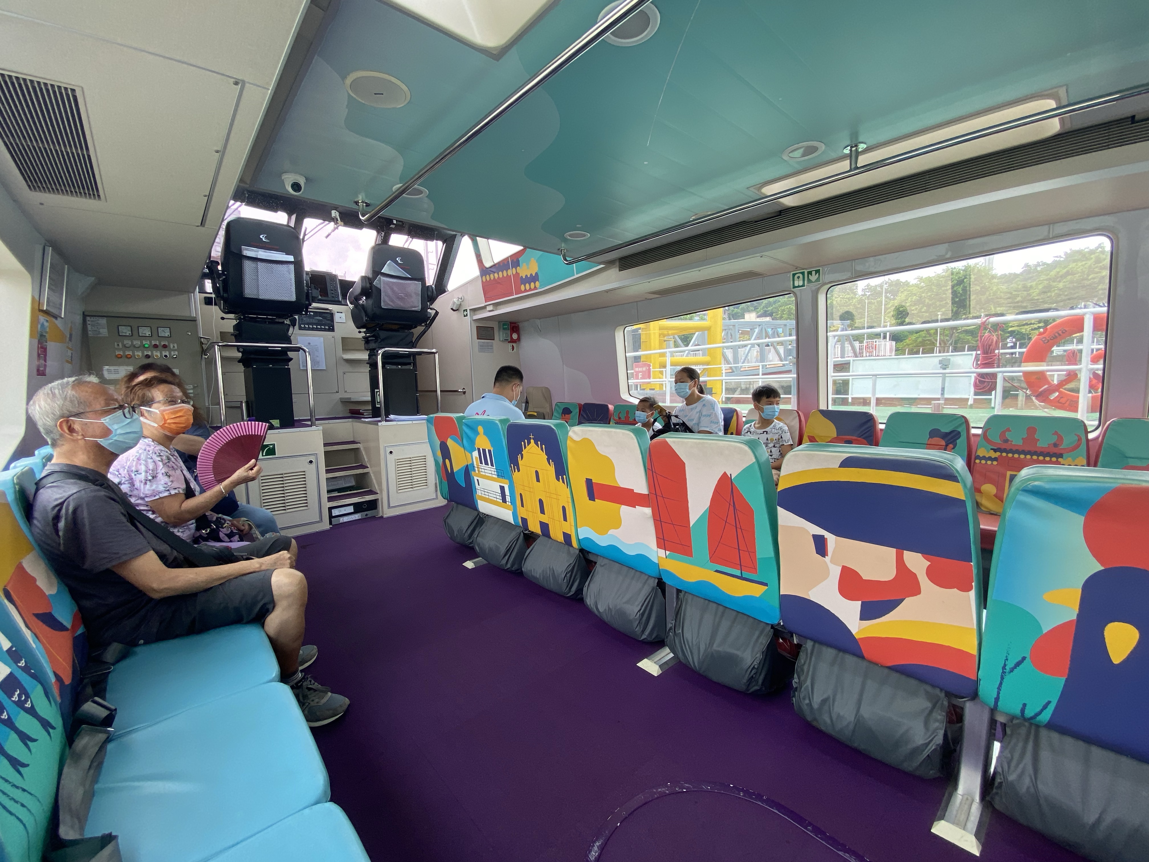當日早上第一班船全船爆滿,好多乘客都係長者同埋小朋友。船隻雖小,但喺水上行駛非常平穩,毫無暈船感覺。船上有錄音介紹沿途景觀,欣賞景色之餘又可以增進對澳門、灣仔同橫琴嘅認識,係一個舒適又有教育意義嘅船程!渡輪二十分鐘就到路環碼頭,一落船就可以去買生曬海味,或者食返件葡撻、去荔枝碗嘆返杯400擊咖啡啦!