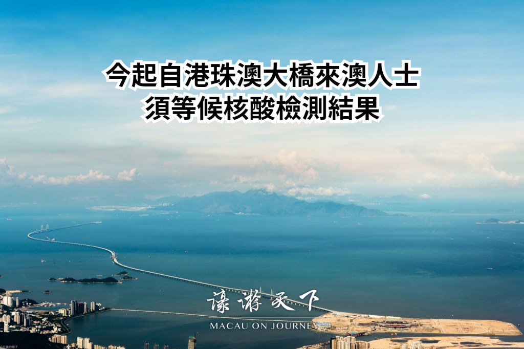 新型冠狀病毒感染應變協調中心宣佈,因應香港疫情變化,為減少在醫學觀察酒店內傳播的風險,自今(17)日早上6時起,從香港經港珠澳大橋來澳人士,需在港珠澳大橋口岸等候新冠病毒核酸檢測結果,而出檢測結果需時約六個小時;陰性者將安排送往醫學觀察酒店接受醫學觀察,陽性者則會送往公共衛生臨床中心隔離治療,有關人士要做好相應準備。
