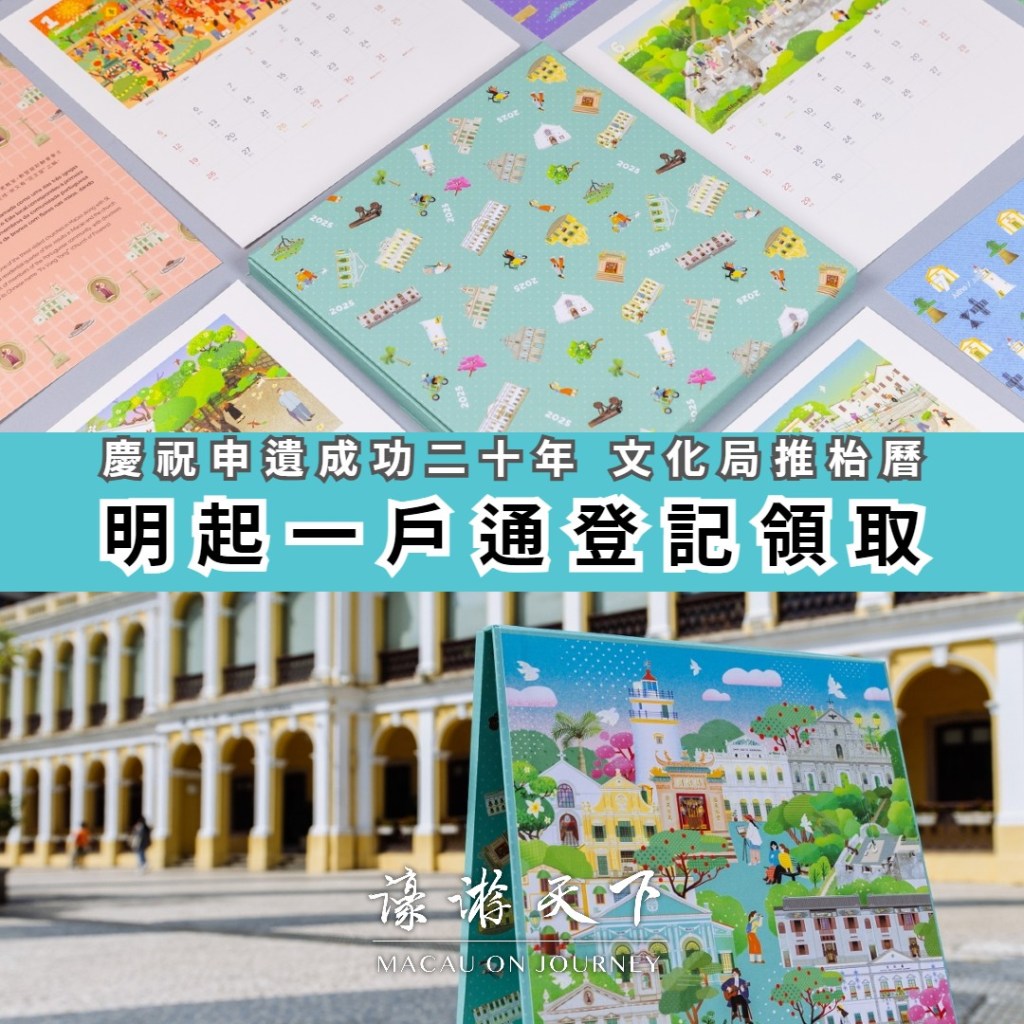 為慶祝「澳門歷史城區」申遺成功二十周年,文化局推出以「日往月來,最美邂逅」為題的2025年枱曆。有意領取的市民可於明日起透過一戶通進行登記。