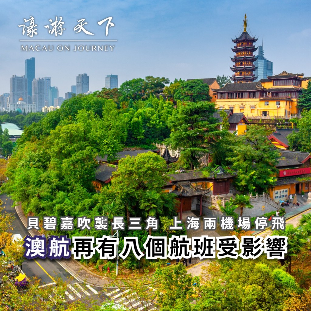 颱風貝碧嘉正面吹襲長三角地區,上海兩座機場已經暫停運作。澳門航空今日將取消兩個來回澳門及華東地區的航班,另有六個航班將延誤更改時間。