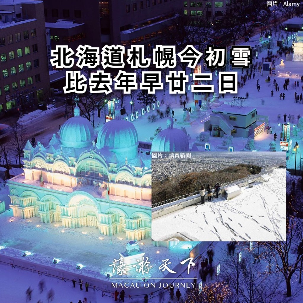 日本北海道首府札幌今日初雪,比去年早廿二日,也比平年早八日。