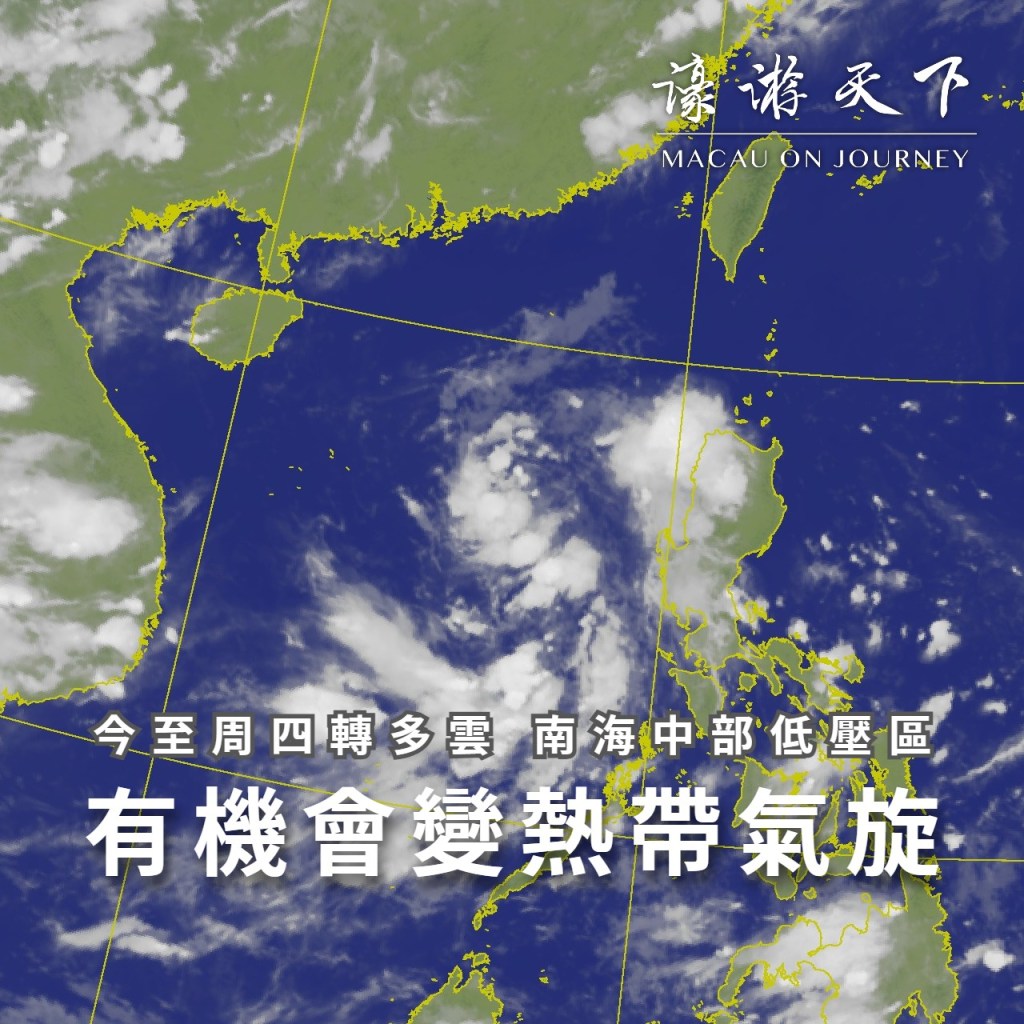 氣象局預測,南海中部將有一低壓區發展,周末起天氣將會出現較大轉變。
