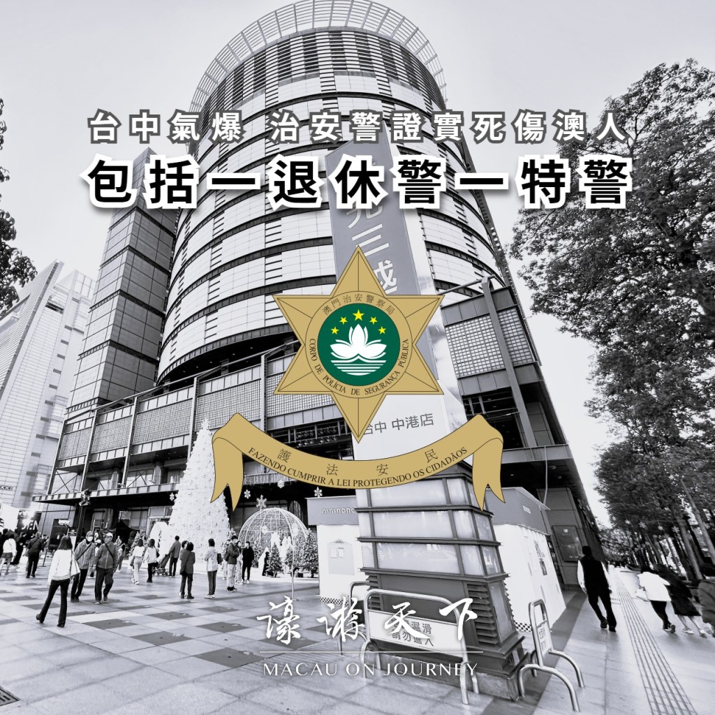 台灣台中新光三越昨日發生氣爆意外,造成本澳一家七口兩死五傷,治安警察局證實當中一名死者為該局退休警員,一名男傷者是該局特警隊的現職警員。