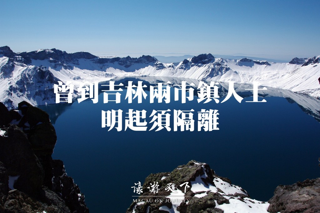新型冠狀病毒感染應變協調中心宣佈,因應吉林省的最新疫情發展,衛生局根據第2/2004號法律《傳染病防治法》第14條的規定,自2021年1月18日零時起,所有在入境前14天內曾經到過吉林省通化市或長春市的公主嶺市范家屯鎮的人士,須按照衛生當局的要求在指定地點接受14天醫學觀察,違反者除可能依法承擔相應的刑事責任外,尚可被採取強制隔離的措施。