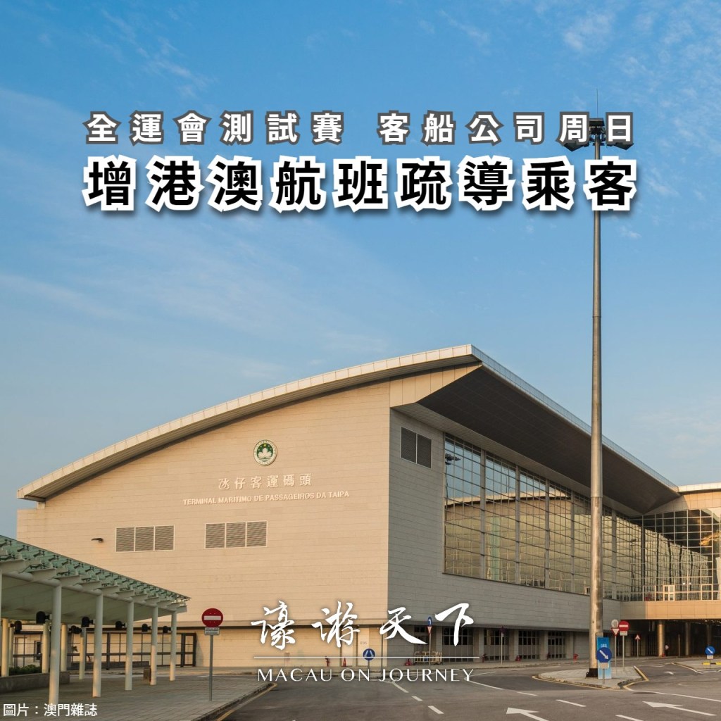 為配合星期日舉行的全運會自動車測試賽,當日上午客船公司將加開來往澳門及香港的客船班次,以疏導來往兩地的乘客。