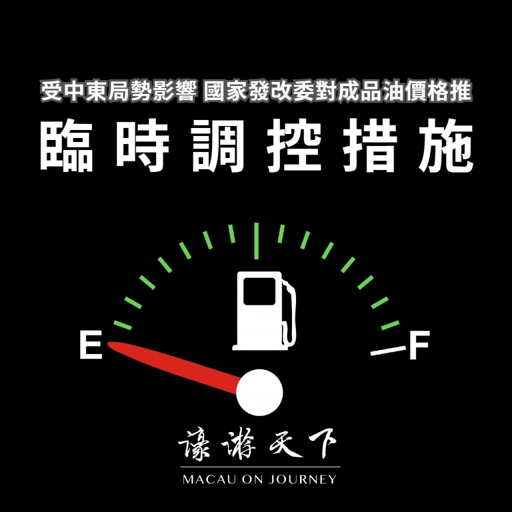 物價, 能源, 中國內地 受中東局勢影響 國家發改委對成品油價格推臨時調控措施 2026-03-23 濠遊天下 macauonjourney 發佈留言 內地成品油價格今晚深夜起進行新一輪調整。面對國際油價大幅上漲,國家發改委宣佈推出臨時調控措施。 繼續閱讀 受中東局勢影響 國家發改委對成品油價格推臨時調控措施 →
