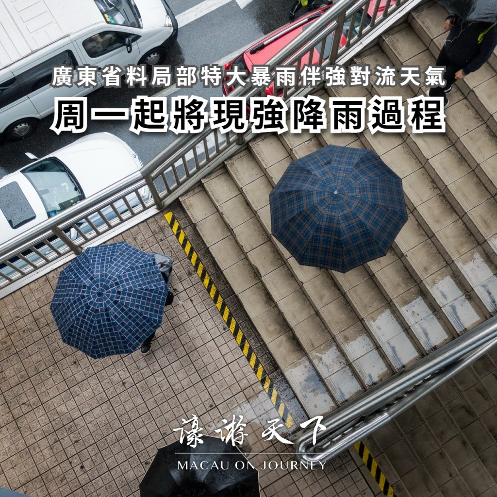 廣東省多個部門聯合發佈提醒,指星期一起省內有一次強降雨過程,伴有強對流天氣。