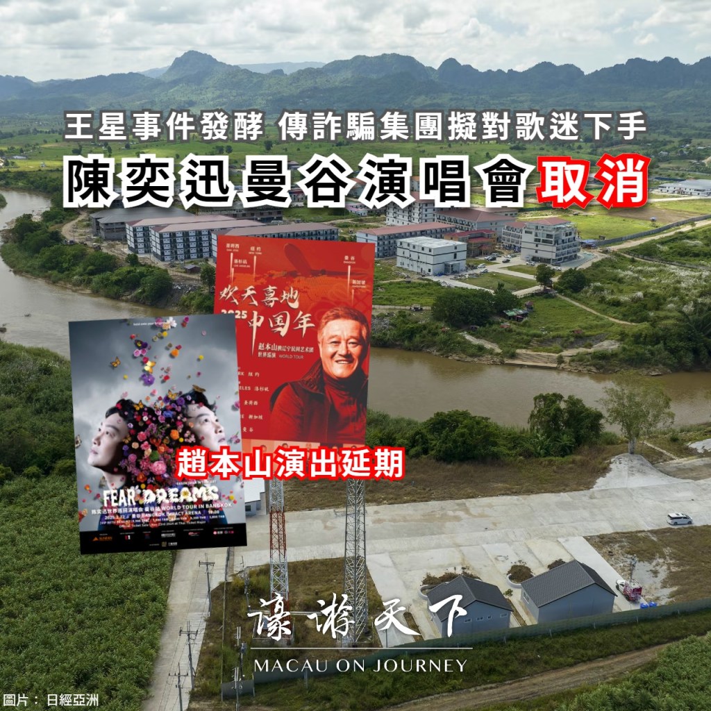 內地演員王星被騙到泰緬邊境詐騙集團園區事件持續發酵!香港歌手陳奕迅「考慮到近期歌迷前往泰國的安全問題」,宣佈取消原訂下月舉行的世界巡迴演唱會曼谷站。