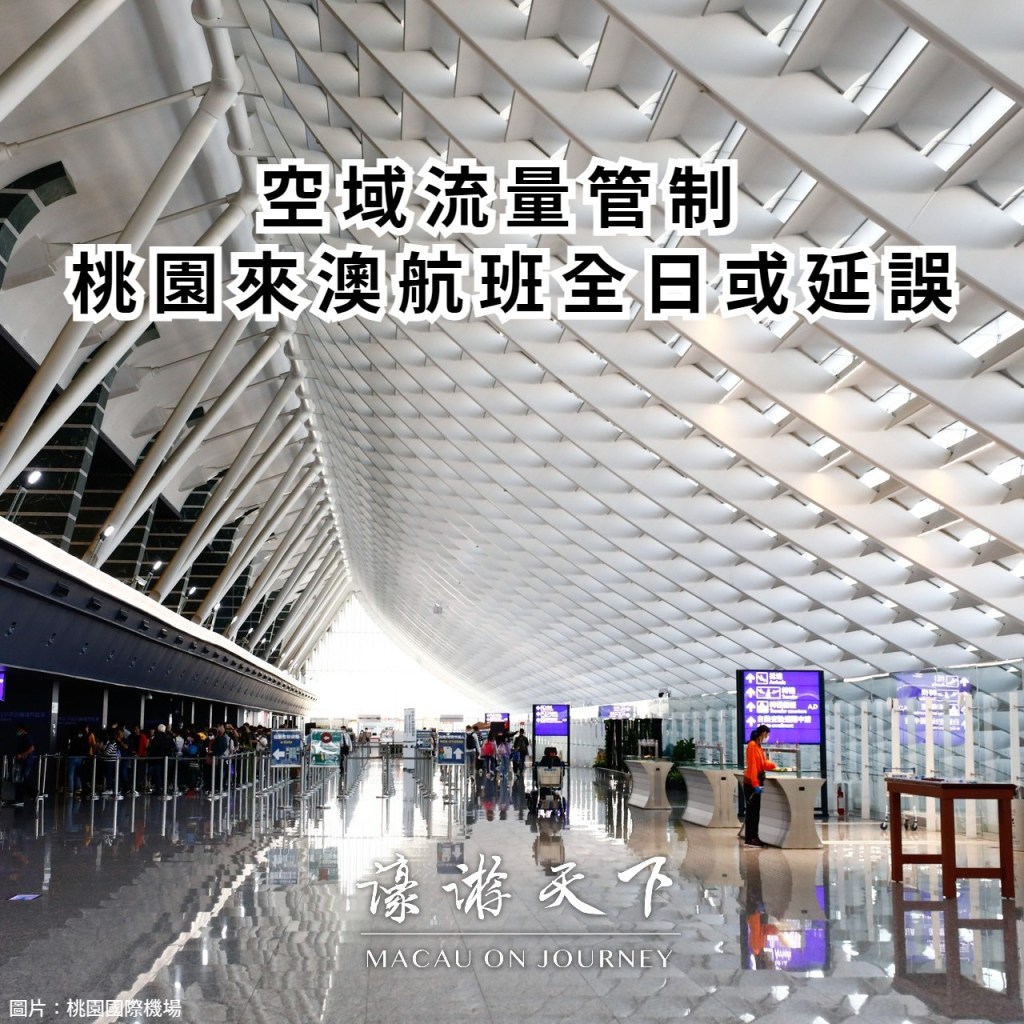在臺灣,因當地空域流量管制,桃園國際機場飛往香港、澳門在內目的地的航班,可能有所延遲,預計將持續一整日。